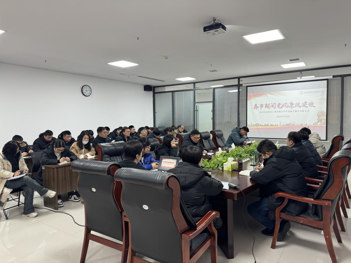 為進一步深入貫徹落實國晟集團黨委、城鄉建投紀委要求,有效遏制和預防節日期間“四風”和腐敗問題,筑牢全員拒腐防變思想防線,抓好春節節假日期間作風建設,2024年2月6日上午,河南宏創建設工程有限公司召開春節前廉潔警示教育專題會,公司全體員工參加會議。